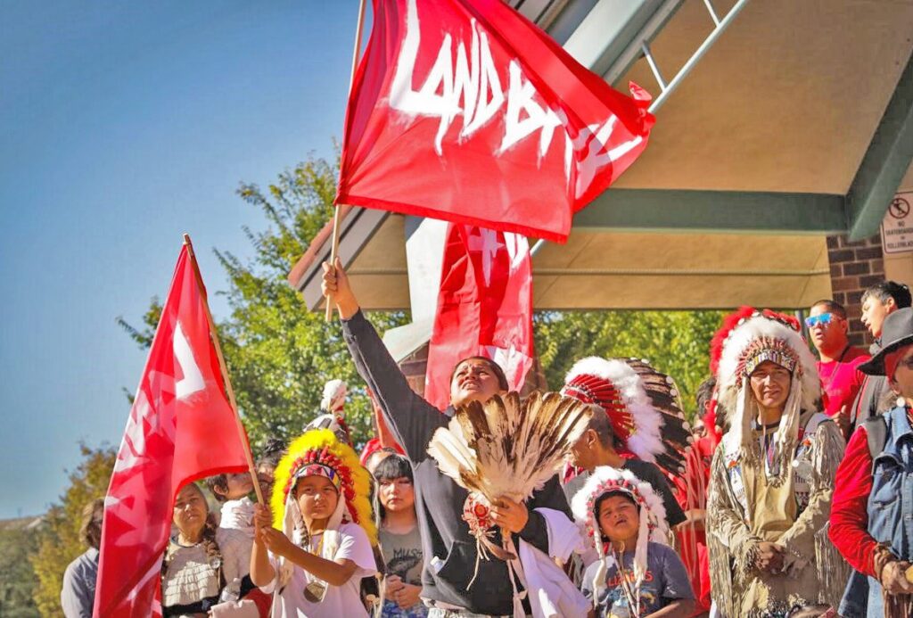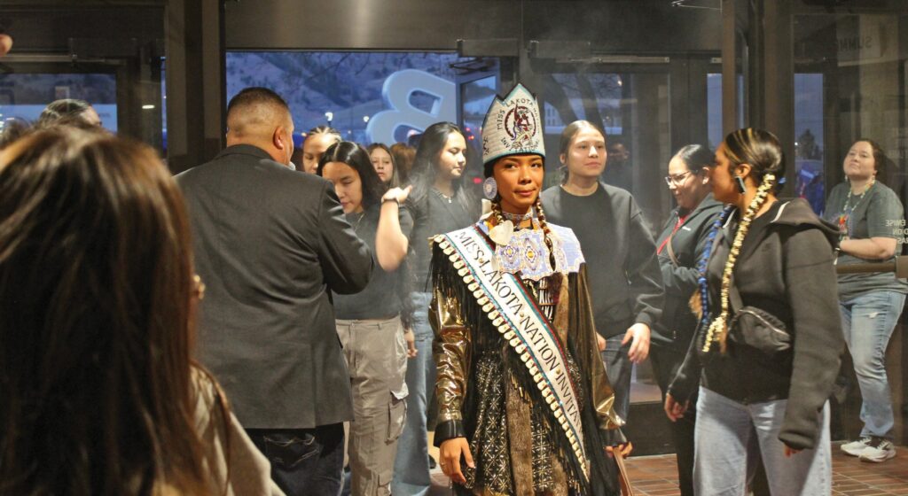 C-EB’s Levi Elk Nation rips down a rebound. (L-R) (1) Memphis Brewer, (12) Nicholas Woods, (1) Damien Clown, (hands in air) Braylon Little, (22) Christain Jack, and (11) Nehemiah Veaux. (Photo by Michele Davies) RAPID CITY—Whether they won by blowout or nail-biter, the Mahpiya Luta Crusaders had the formula to