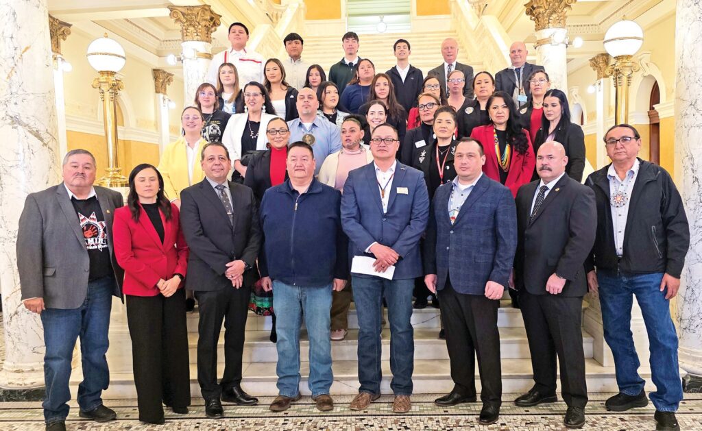 Speakers, state legislators, tribal leaders, students, and officials from the Department of Tribal Relations. (Photo by Marnie Cook) PIERRE – More than one hundred people attended the 2026 State Tribal Relations Day held at the Capitol Rotunda in Pierre on Wednesday, February 25. Some of those in attendance were Governor