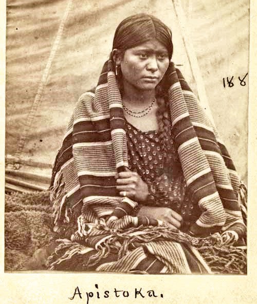 A young Dakota woman incarcerated at the Fort Snelling concentration camp is photographed in 1862. Survivors of the camp were sent via steamboat to the Crow Creek Reservation in South Dakota and the Santee Reservation in Nebraska. (Courtesy Minnesota Historical Society)