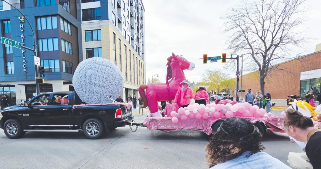 Indigenous Peoples’ Day Parade 2025 float. (Photo by Marnie Cook) RAPID CITY – Downtown Rapid City was aglow in pink balloons, banners, streamers, and t-shirts on Saturday morning as parade-goers began lining up along Main Street to claim the best spots and floats were lining up to show-off their themes