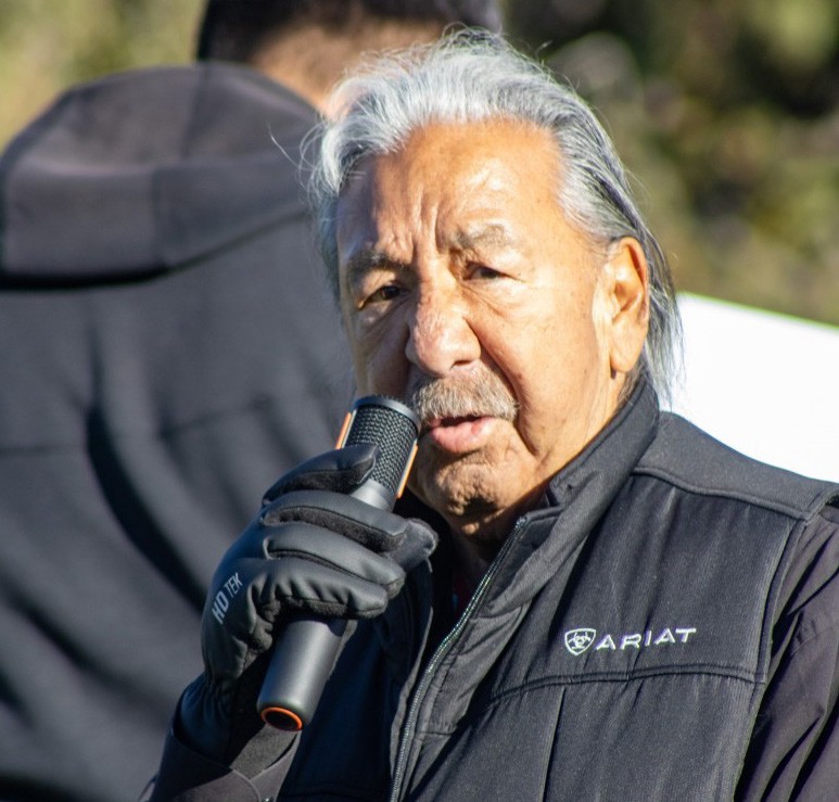 Leonard Peltier, 81, speaks about his experience in boarding school and recent freedom from federal prison during the annual Remembering the Children Walk in Rapid City on Oct. 13. RAPID CITY, South Dakota – Under crisp autumn winds, a sea of orange moved through the west side of Rapid City