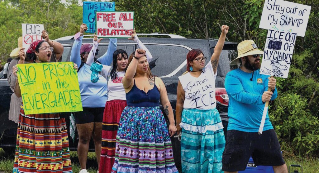 Demonstrators protest the construction of an immigrant detention center, dubbed “Alligator Alcatraz,” in the Everglades near Ochopee, Florida, on June 28. (Photo courtesy Facebook) MiamiAP — A federal judge is set to hear closing arguments Wednesday over whether to stop construction indefinitely at an immigrant detention center in the Florida