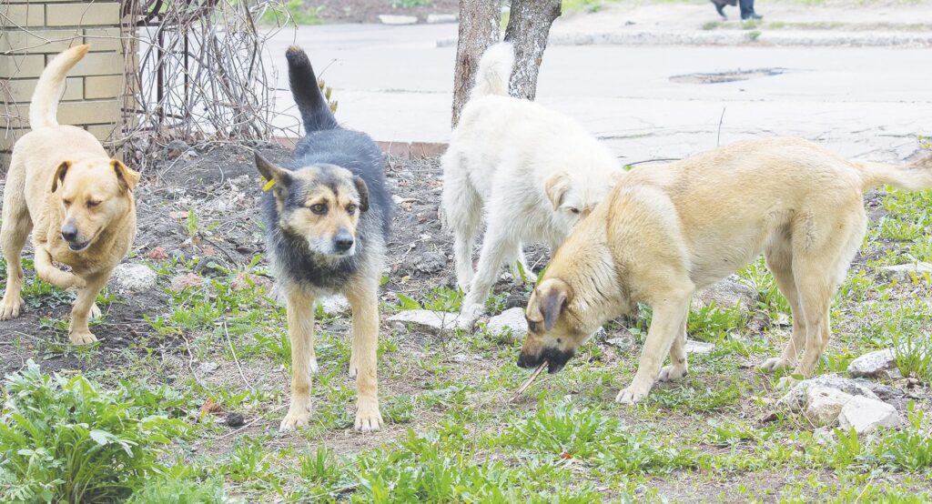 Pack of stray dogs. (Courtesy photo) LAME DEER, Mont. – As this article is penned, several police officers and a Veterinarian are parked within two blocks of my house in Lame Deer, Mont. They are capturing a pack of very large and aggressive dogs in order to remove them from