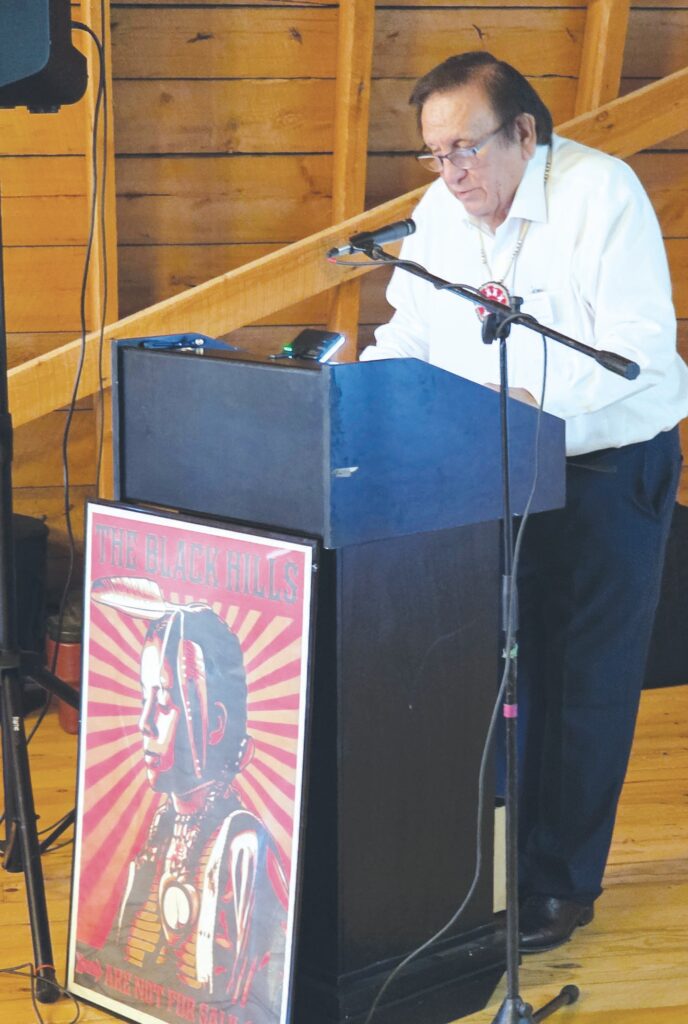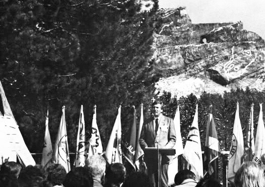 SD Governor George S. Mickelson addressing the audience at the first Native Americans’ Day celebration in October of 1990. Since, Crazy Horse Memorial® has hosted Native Americans’ Day celebrations annually on the second Monday in October. (Photo courtesy Crazy Horse Memorial) In 1990, South Dakota made history by becoming the