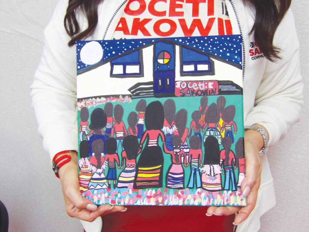 Mary Bowman shares gift given to her depicting the school, students, and Unci Mary. (Photo by Marnie Cook.) RAPID CITY – At Oceti Sakowin Community Academy (OSCA), education goes far beyond traditional textbooks and standardized curricula. This unique institution is pioneering an approach that weaves Lakota culture, language, and values