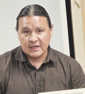 Chase Iron Eyes from the Lakota People’s Law Project. (Photo by Marnie Cook) RAPID CITY – With the rush to mine more gold and uranium from the Paha Sapa, the Lakota name for the Black Hills, as well as lithium and other minerals, Indigenous leaders, environmental advocates and recreationists gathered