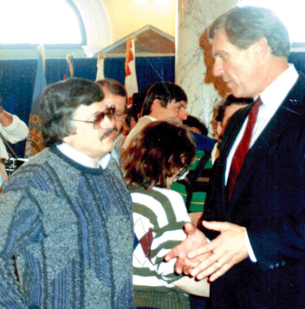 Tim Giago, left, is shown with the late Gov. George Mickelson in this file photo. It was Giago who successfully lobbied the governor to proclaim 1990 a year of Reconciliation between Indians and whites to honor the 100th anniversary of the Wounded Knee Massacre and to change Columbus Day to Native American Day.